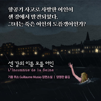 19세기 말에 아름다운 여인 하나가 센 강에 몸을 던져 스스로 목숨을 끊었다. 센 강을 지키던 하천경비대원이 여인의 시신을 건져냈다. 병원 영안실 직원 하나가 여인의 얼굴이 어찌나 아름다운지 몰래 데스마스크를 떴다. 그 후 석고로 제작된 이 데스마스크 복제품들은 파리 곳곳으로 퍼져나갔고, 파리 예술계 인사들의 집을 장식하는 하나의 아이콘이 되었다. 시인 루이 아라공과 소설가 알베르 카뮈의 집에도 여인의 데스마스크가 걸려 있었다고 한다. 기욤 뮈소는 센 강의 이름 모를 여인에 대한 이야기와 고대 그리스로부터 전해 내려오는 디오니소스 숭배 관습을 버무려 가슴이 서늘해지는 한 편의 스릴러를 선보이고 있다.