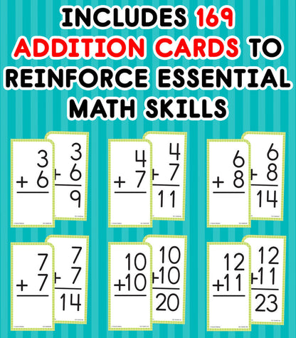 Practice addition skills and build fluency! These flashcards are perfect for mastering all addition facts 0-12. Use them individually, in small groups, in centers, at home, and more.