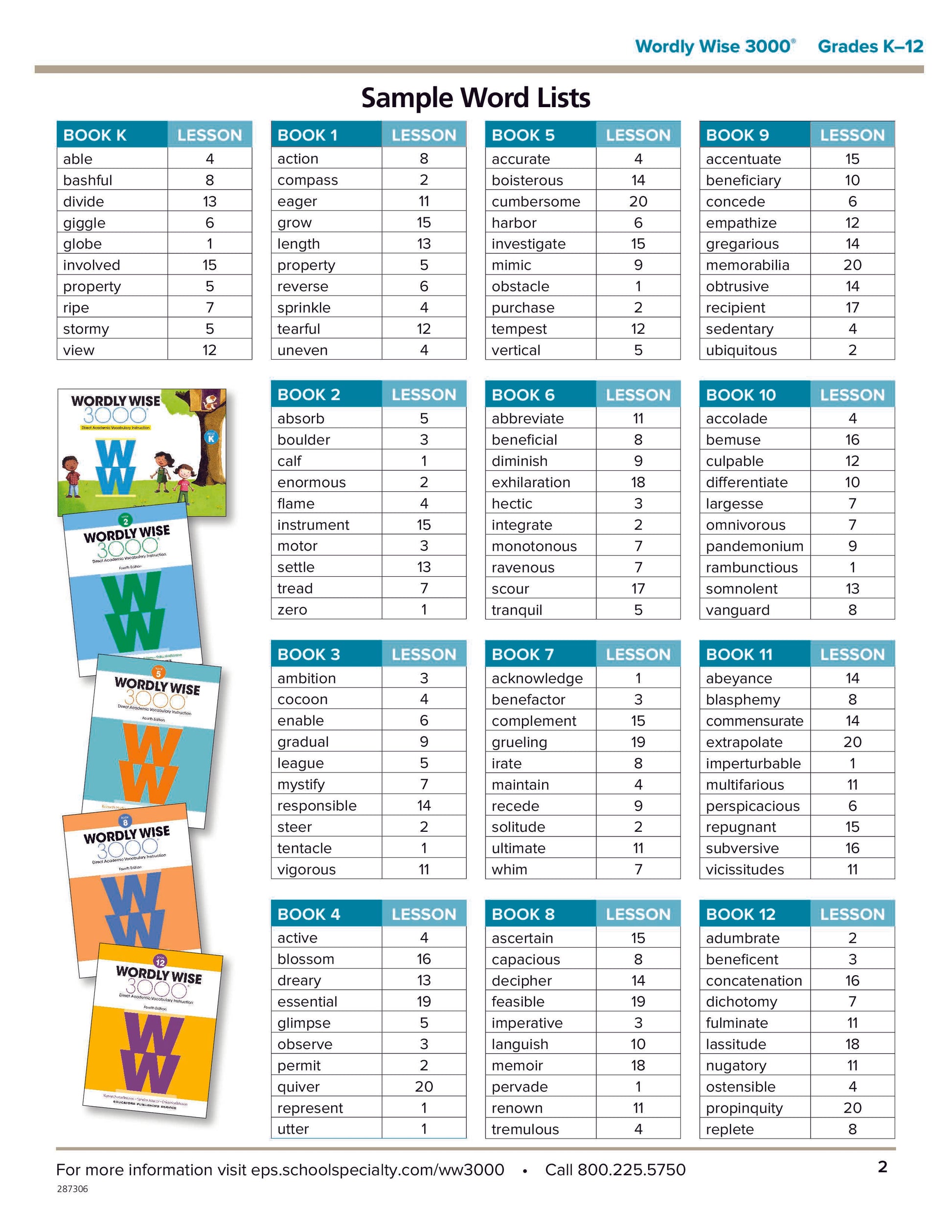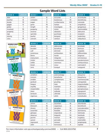 Wordly Wise 3000® direct academic vocabulary instruction is designed to help students expand critical grade-level vocabulary and improve reading comprehension for grade-level literature, content-area reading, textbooks, and high-stakes tests.